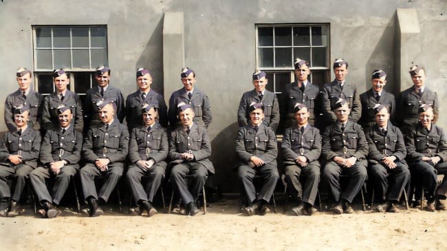 Mei 1941, Bombing and Gunnery School. Jack Ward zittend op de eerste rij, 5de van rechts.