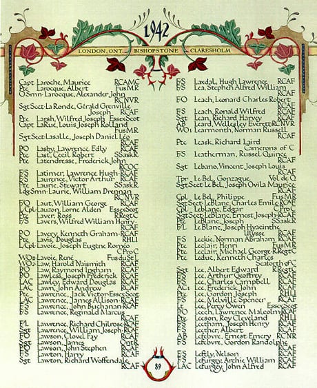 Herdacht op Pagina 89 van het Boek “Second World War Book of Remembrance”