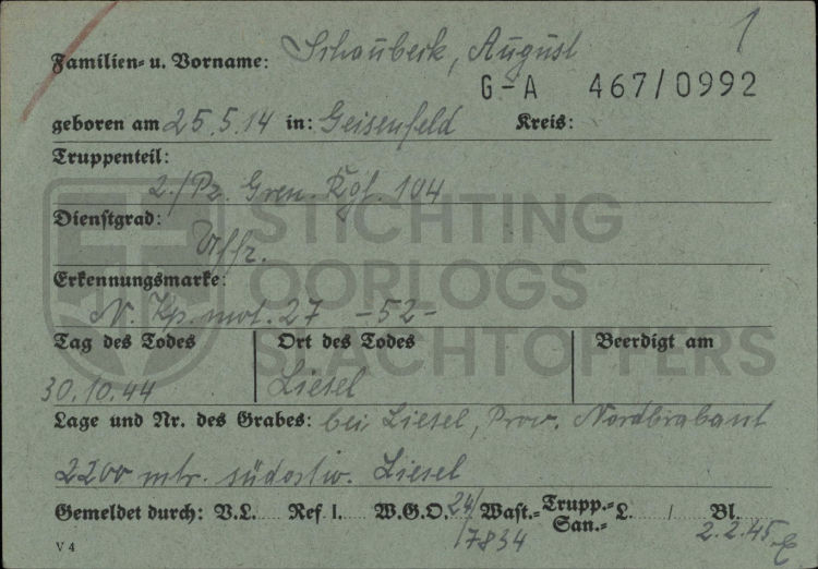 August Schaubeck rust mogelijk “Unter den Unbekannten” op de Duitse militaire Begraafplaats te Ysselsteyn.