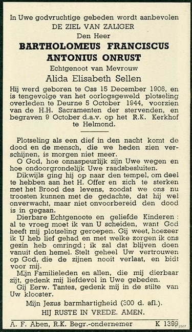 | Voornamen | : Bartholomeus Franciscus Antonius Maria Onrust | |