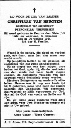 Op de vlucht voor het oorlogsgeweld, in de richting van de schuilkelder/silo bij de overburen, werden Christianus van Hugten, Johannes Jozef Willemse en diens zoon Herbertus Mathijs Marie Willemse verrast door een voltreffer in het broedlokaal. Johannes Jozef Willemse en diens zoon Herbertus Mathijs Marie Willemse kwamen hierbij om het leven, Christianus van Hugten werd zwaar gewond afgevoerd naar het ziekenhuis te Helmond waar hij enkele weken later overleed aan zijn verwondingen.
