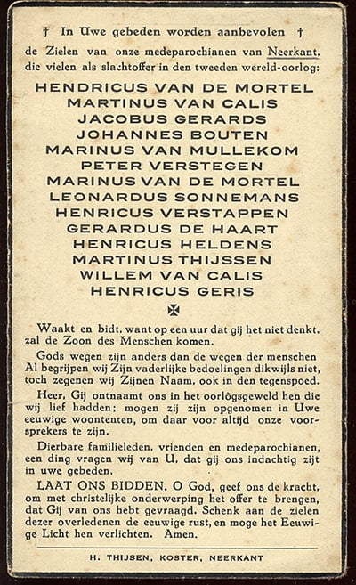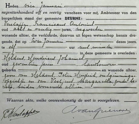Hendricus Johannes Heldens, werkzaam als boerenknecht, stapte tijdens zijn werkzaamheden op een landmijn en overleed ter plaatse.