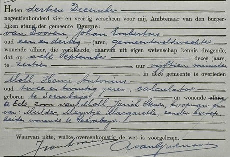 Zoon van Jarich Steven Moll en Meyntje Margarethe Mulder. Wonende Markt 34 Oudenbosch.