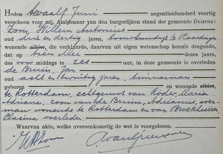 Zoon van Adrianus de Bruin en Clasina Broekhuizen, weduwe Maria Adriana de Bruin-Röder