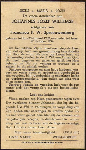 Zoon van Pieter Jan Willemse en Anna Catharina Geerarts, weduwe Francina Petronella Wilhelmina Spreeuwenberg. Vader van Herbertus Mathijs Marie Willemse.