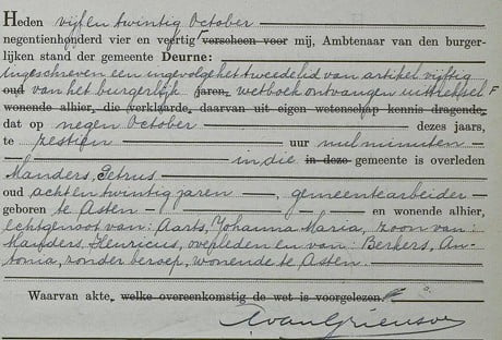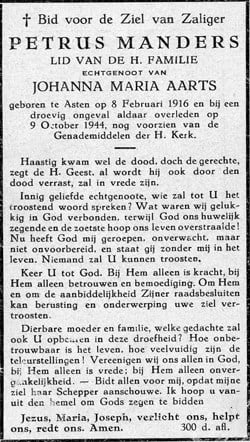 Zoon van, Henricus Manders en Antonia Berkers, weduwe Johanna Maria Aarts.