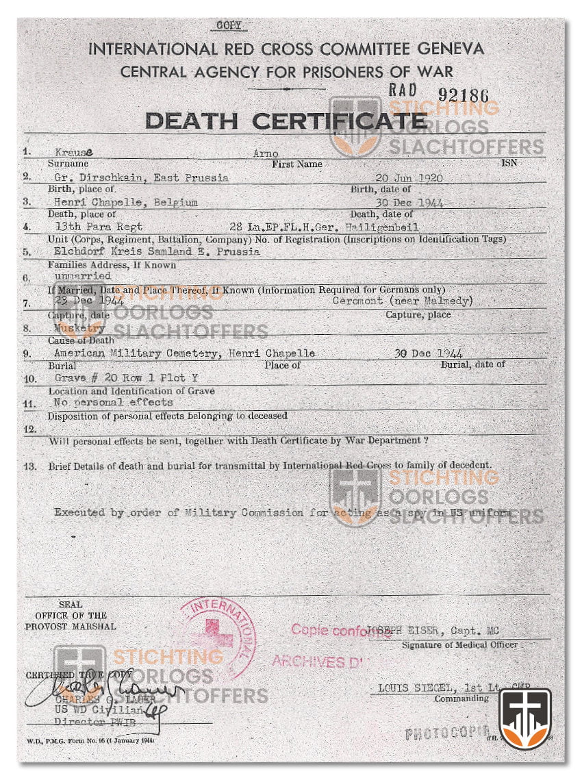 | Gestorben / Hingerichtet | 30.12.1944 in Henri-Chapelle (Belgien) |