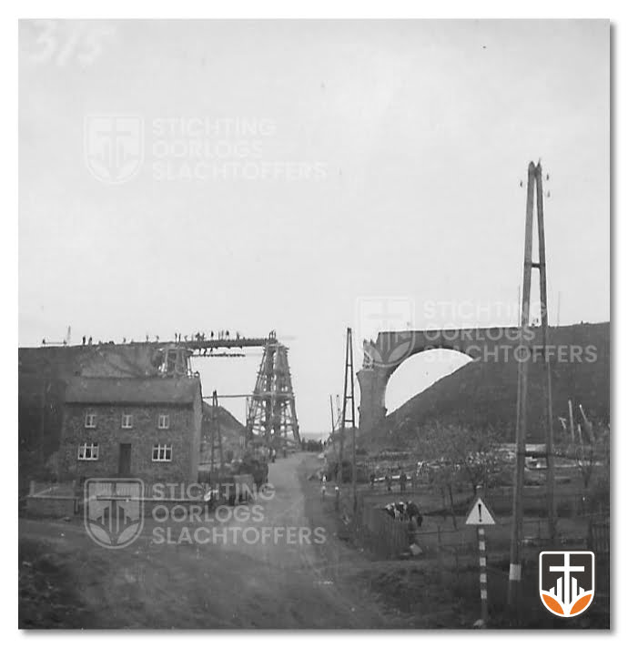 Reparaturarbeiten einer zerstörten Eisenbahnbrücke Burg Reuland / Eupen Malmedy.
